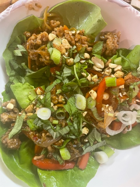 For a low carb dinner option tonight, I made pork lettuce wraps for my husband and me. He absolutely loved them as did I!
