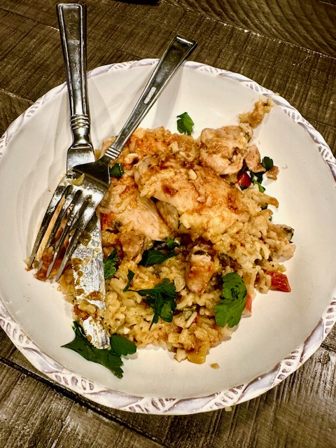 I was feeling nostalgic for some of the dinners my mom would sometimes make in the 80’s so decided to make my own version of the chicken and rice bake most of us probably remember well.