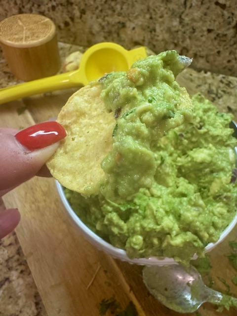 I just prepared the guacamole and I swear, every time I make it, it seems to taste better. I have a couple versions of guacamole in my blog and this one is my newest. I love jalapeños, but decided not to add them this time, only because I’m serving jalapeño poppers (lots of them!) as well and I thought I’d leave them out. When I tried it, it didn’t taste like anything was missing, it’s just as good as my guac with the jalapeños.